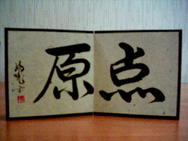 「 原点 」 この言葉も、上記と同じく 本の題字に使ったものです。 (これは原本ではありません) 会社の商談机の横に 飾っています。 いつも、「原点」にもどることが できるように・・・・・ ※この作品は、’07/夏に来社した飛び込み 新人営業マンにお贈りしました^^ |