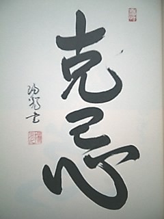 「 克己心 」 この文字は、友人が本を 出版されるということで 「題字」のなかにつかわれた 文字です。 「己の心に克(かつ)」 とは、何よりも難しいこと なので、”勢い”を つけてみました(^_^) |