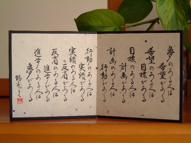 「夢にむかって」 いつも拝読している 素晴らしい言葉でしたが 今年は、読むだけでなく 覚えたいと思います。 何度読んでも 力がみなぎってくる 言葉ですね。 |
